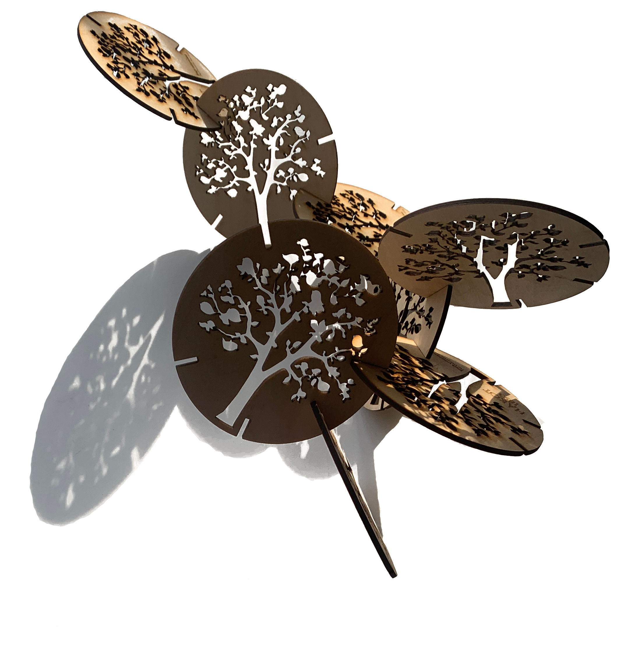 With the coasters you can create your own forest when not in use. Magically, and due to the transparency of this sculptural composition, the shadows reproduce the pattern of the trees on the table.