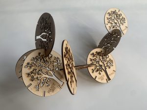 8 coasters with the cut silhouette of the Tree of the Year 2016 in Iceland, Black Cottonwood.
